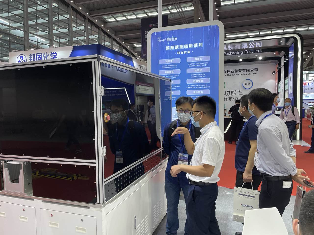 亮相本次展会的第三代手机盖板玻璃检测设备——T3400设备,在性能升级方面,可精准识别97%以上各类缺陷,检测速度较传统方式提升30多倍,并新增了分布式检测等功能;在实际产线应用方面,良品率可达到99.5%以上,设备的故障率也显著降低,稳定性大幅提升。